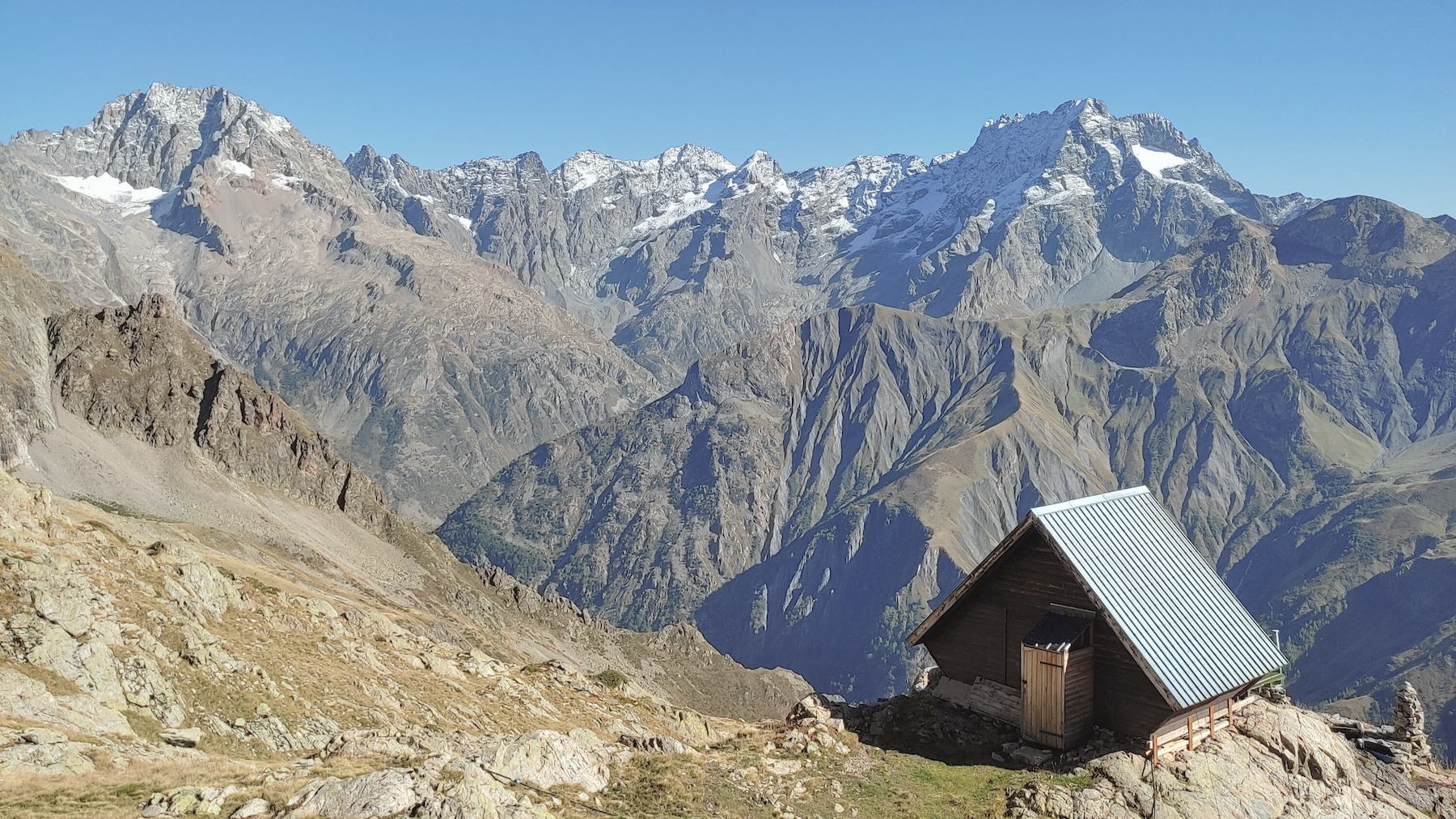 Perché à 2500 mètres, face au Sirac, ce refuge non gardé est une pépite. Vue plongeante sur la profonde vallée du Valgaudemar. Tout petit au milieu des sommets. Il intime l’humilité.